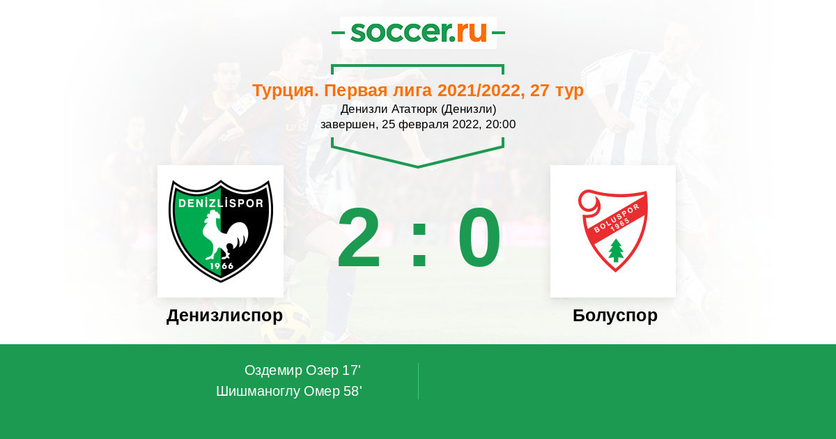 Протокол матча Денизлиспор против Болуспор