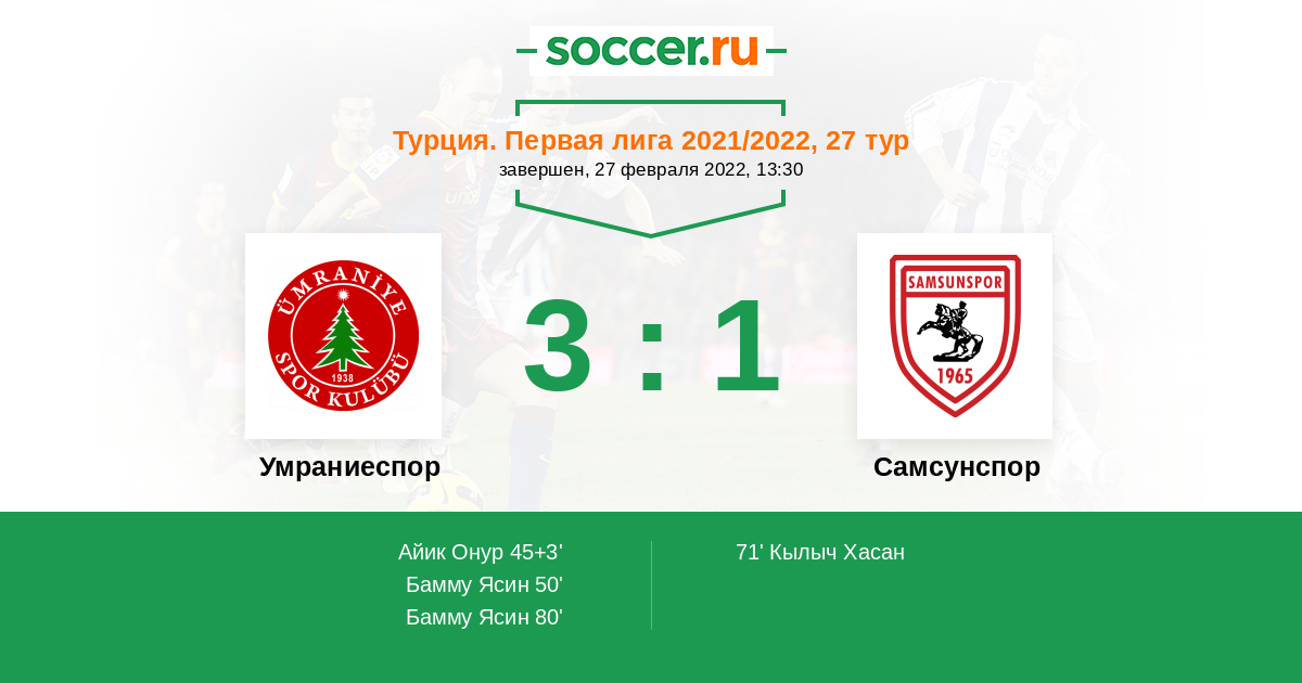 71' (2:1) Кылыч Хасан (55) (Томане (9))