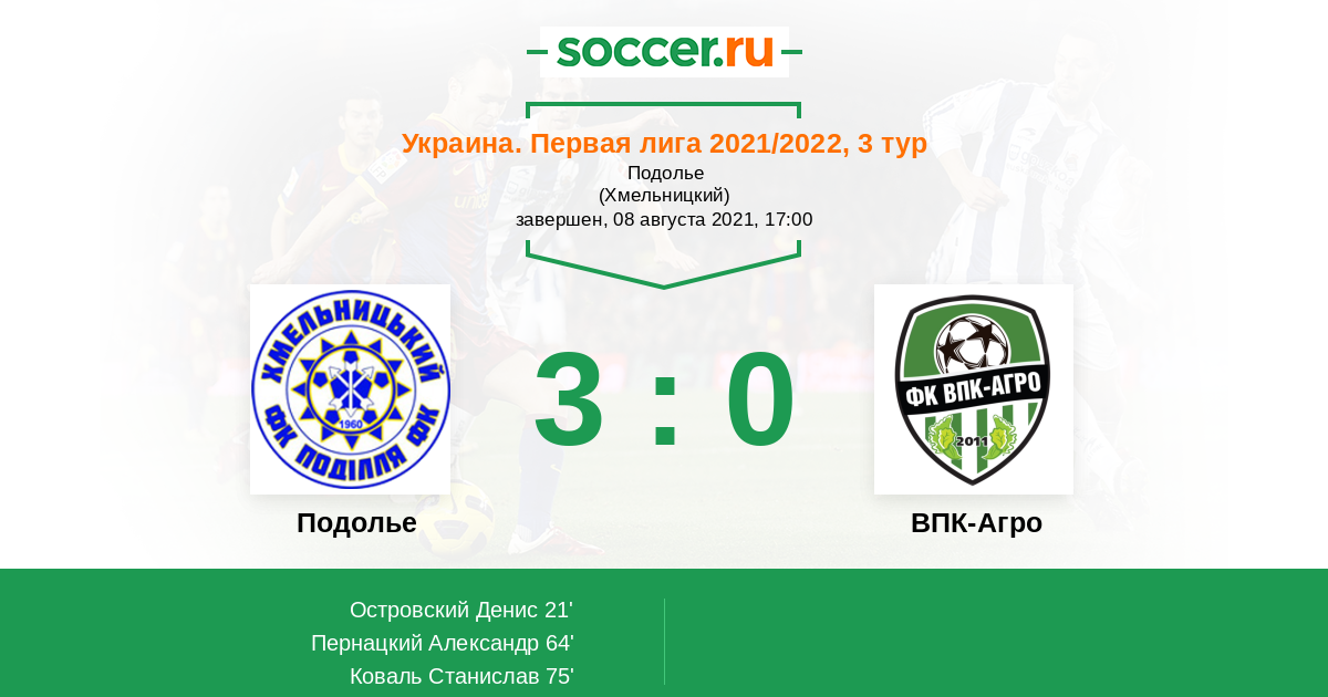 Протокол матча Подолье против ВПК-Агро