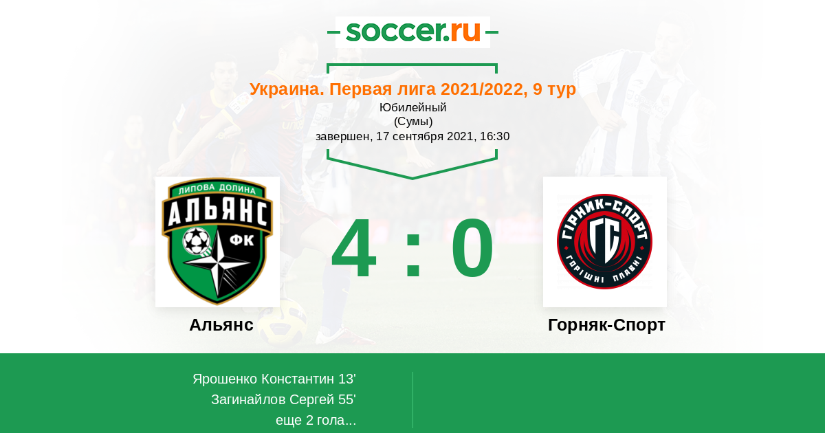 Протокол матча Альянс против Горняк-Спорт