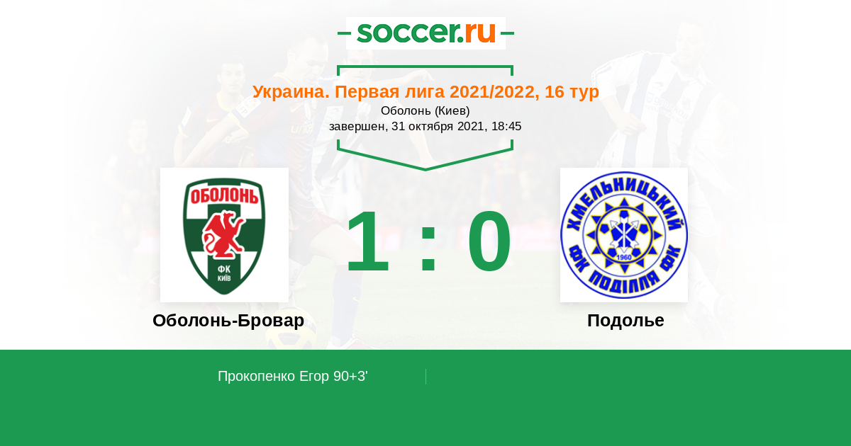 Протокол матча Оболонь-Бровар против Подолье