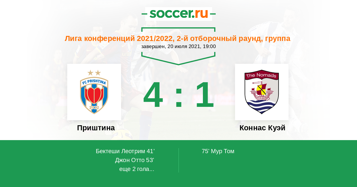 Протокол матча Приштина против Коннас Куэй