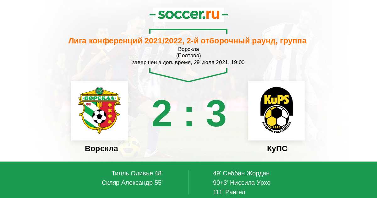 Протокол матча Ворскла против КуПС