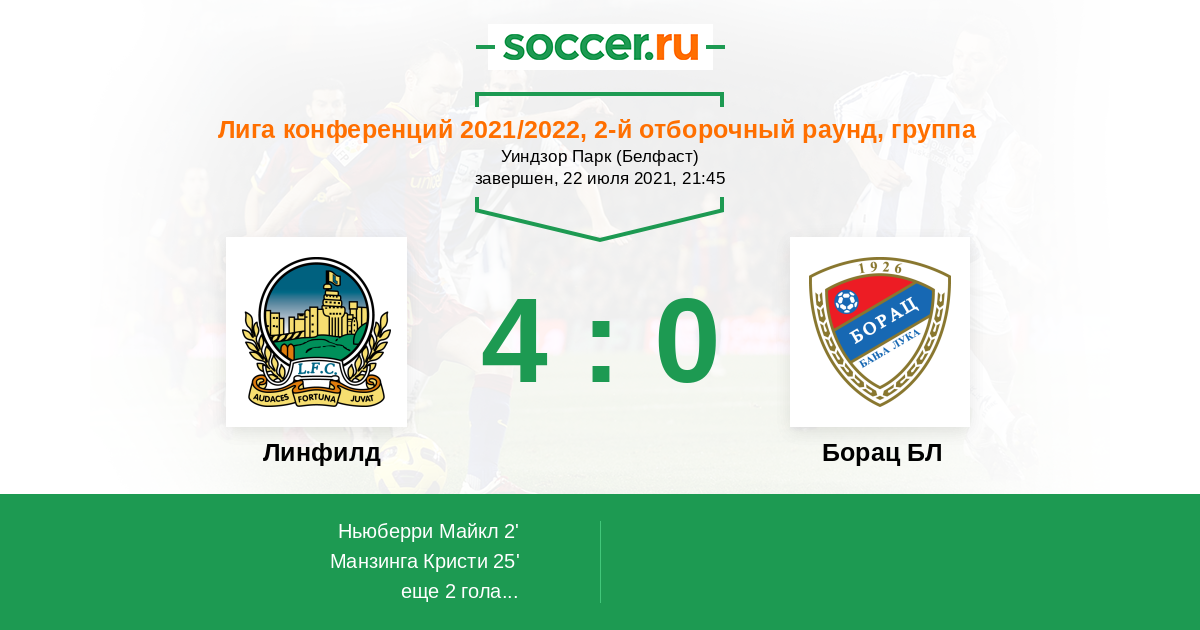 Протокол матча Линфилд против Борац БЛ