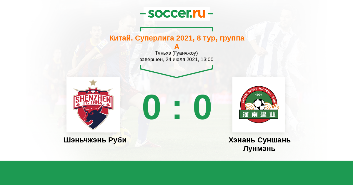 Протокол матча Шэньчжэнь Руби против Хэнань Суншань Лунмэнь