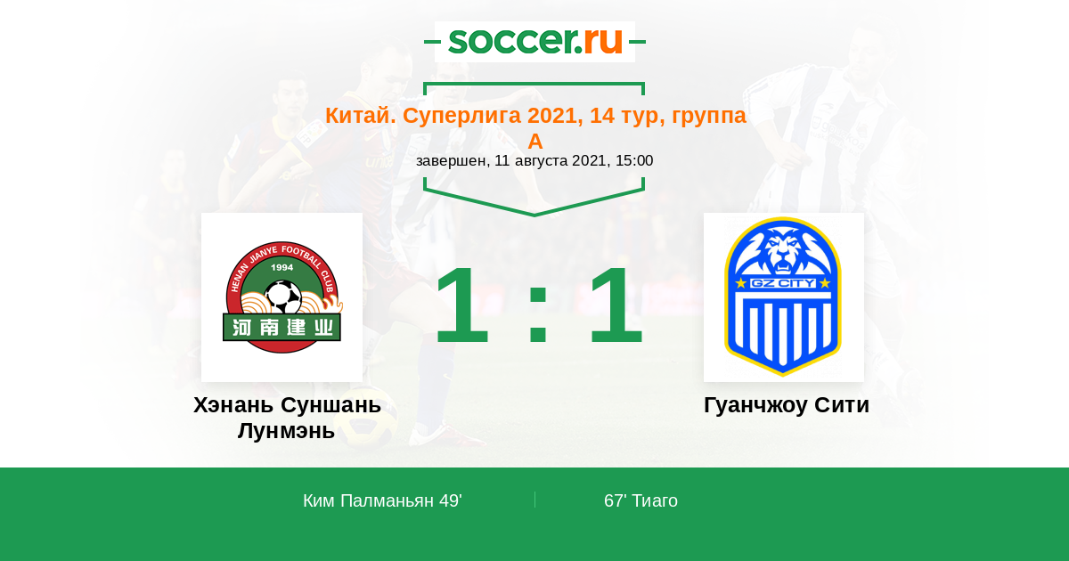 Протокол матча Хэнань Суншань Лунмэнь против Гуанчжоу Сити