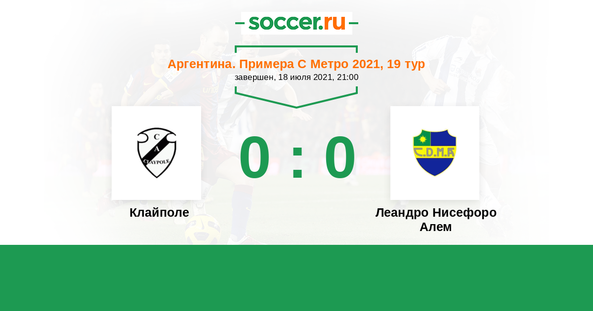 Аргентина. Примера С Метро 26.06.2022 Клайполе Логотип футбольный клуб Клайполе 3:0 Логотип футбольный клуб Леандро Нисефоро Алем (Буэнос-Айрес) Леандро Нисефоро Алем