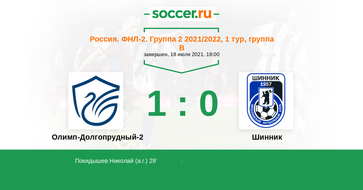 Протокол матча Олимп-Долгопрудный-2 против Шинник