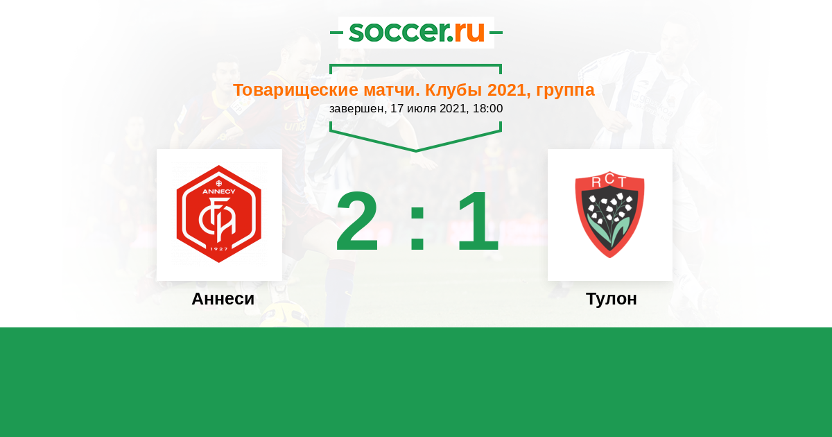 Товарищеские матчи. Клубы 17.07.2021 Анси Логотип футбольный клуб Анси (Аннеси) 2:1 Логотип футбольный клуб Тулон Тулон