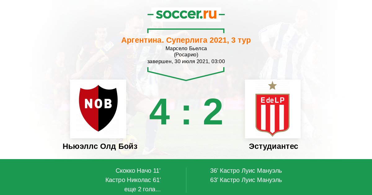 Протокол матча Ньюэллс Олд Бойз против Эстудиантес