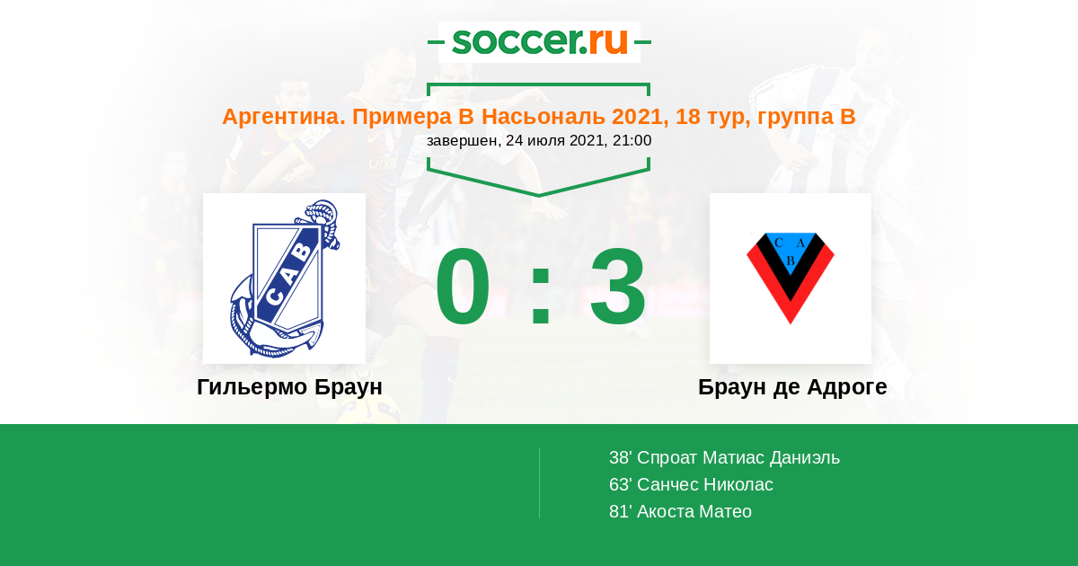 Протокол матча Гильермо Браун против Браун де Адроге