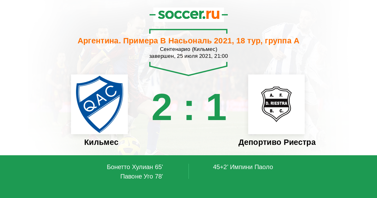 Протокол матча Кильмес против Депортиво Риестра