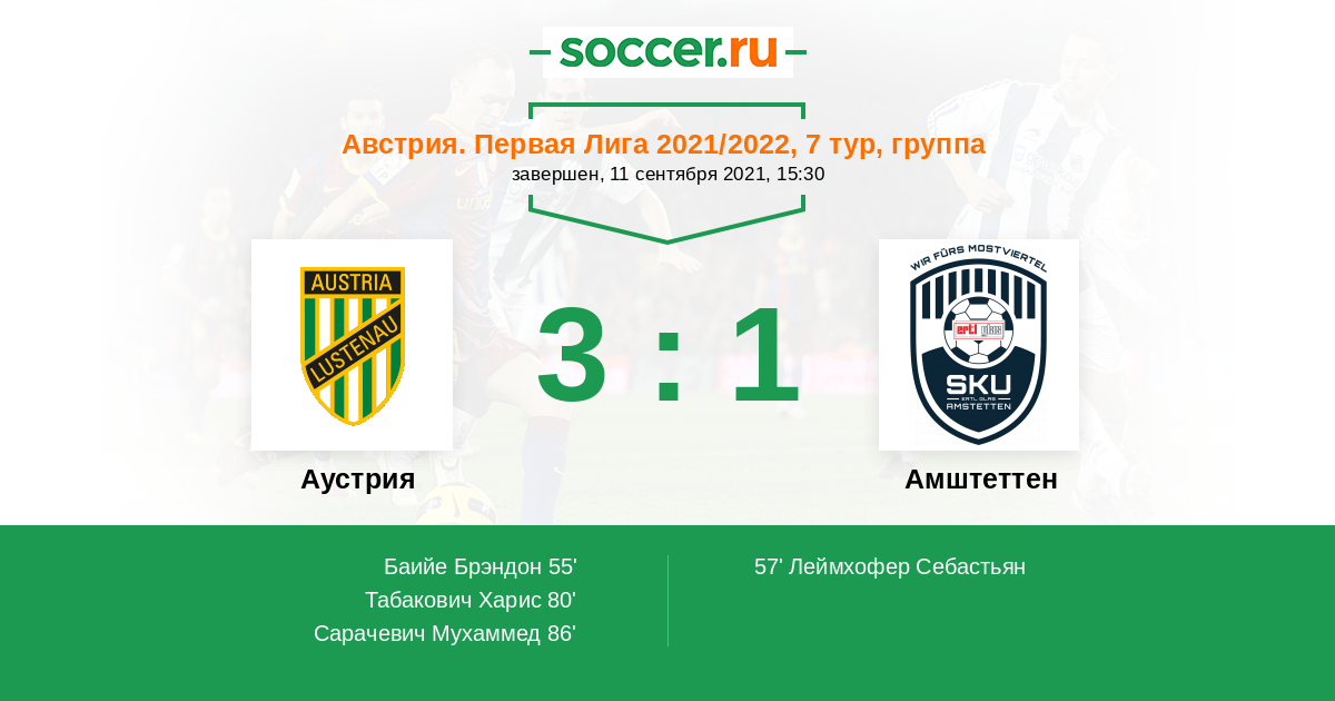 Протокол матча Аустрия против Амштеттен