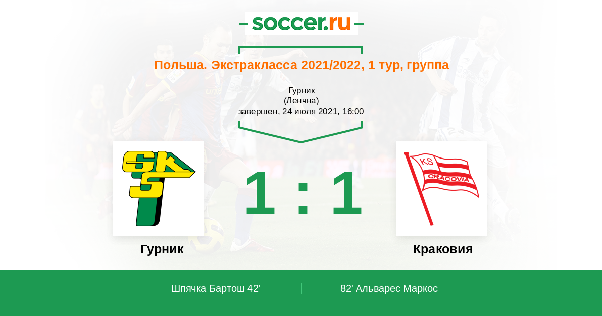 Протокол матча Гурник против Краковия