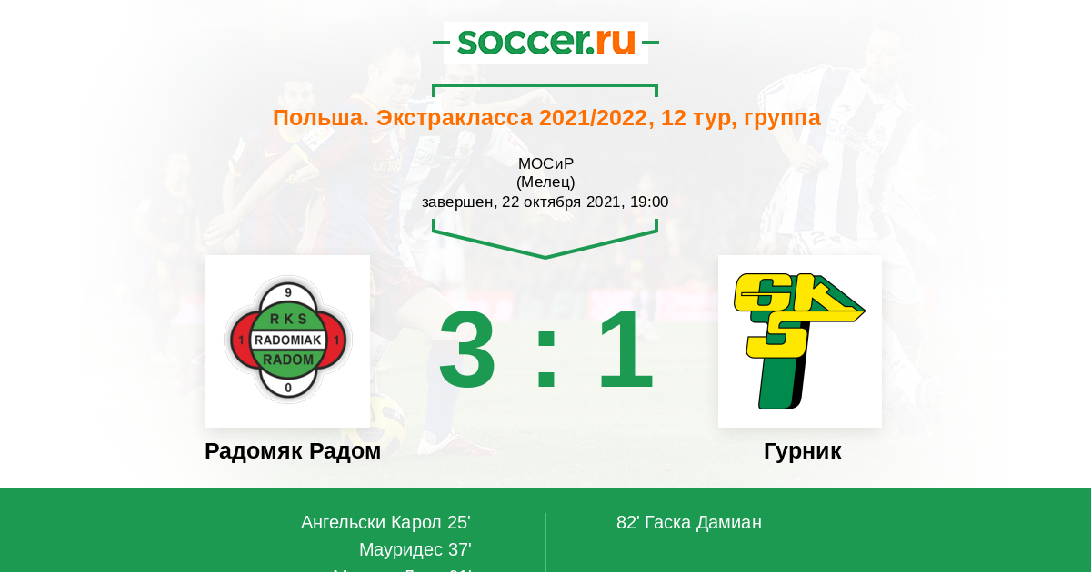 Протокол матча Радомяк Радом против Гурник
