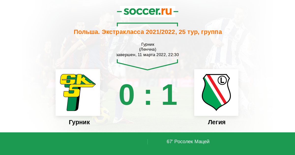 Протокол матча Гурник против Легия