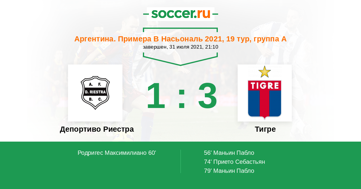 Протокол матча Депортиво Риестра против Тигре