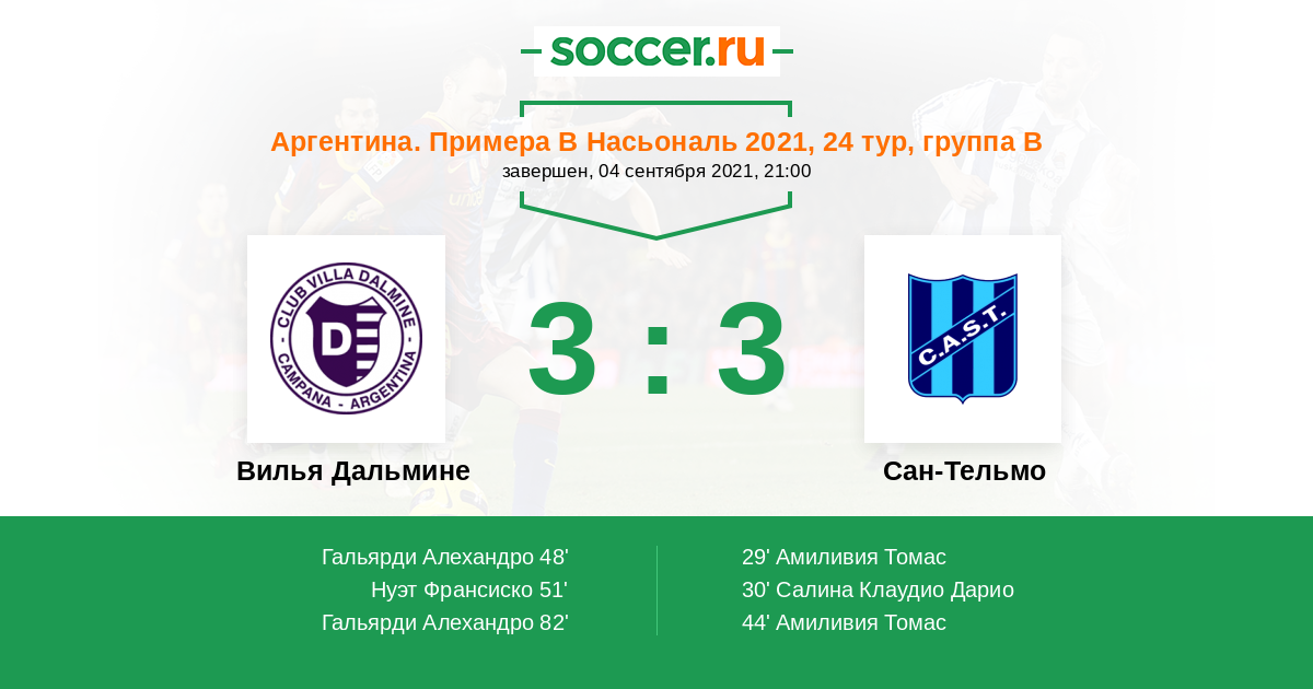 Протокол матча Вилья Дальмине против Сан-Тельмо