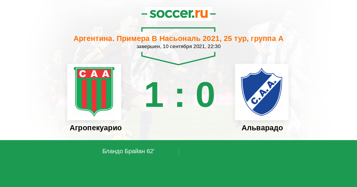 Протокол матча Агропекуарио против Альварадо
