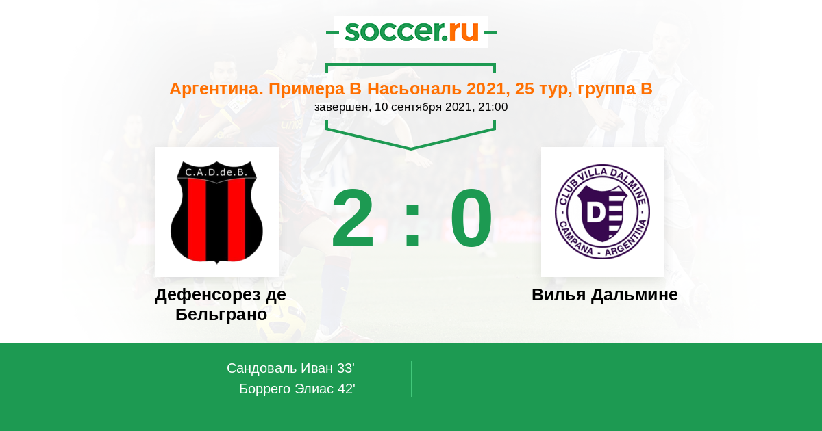 Протокол матча Дефенсорез де Бельграно против Вилья Дальмине