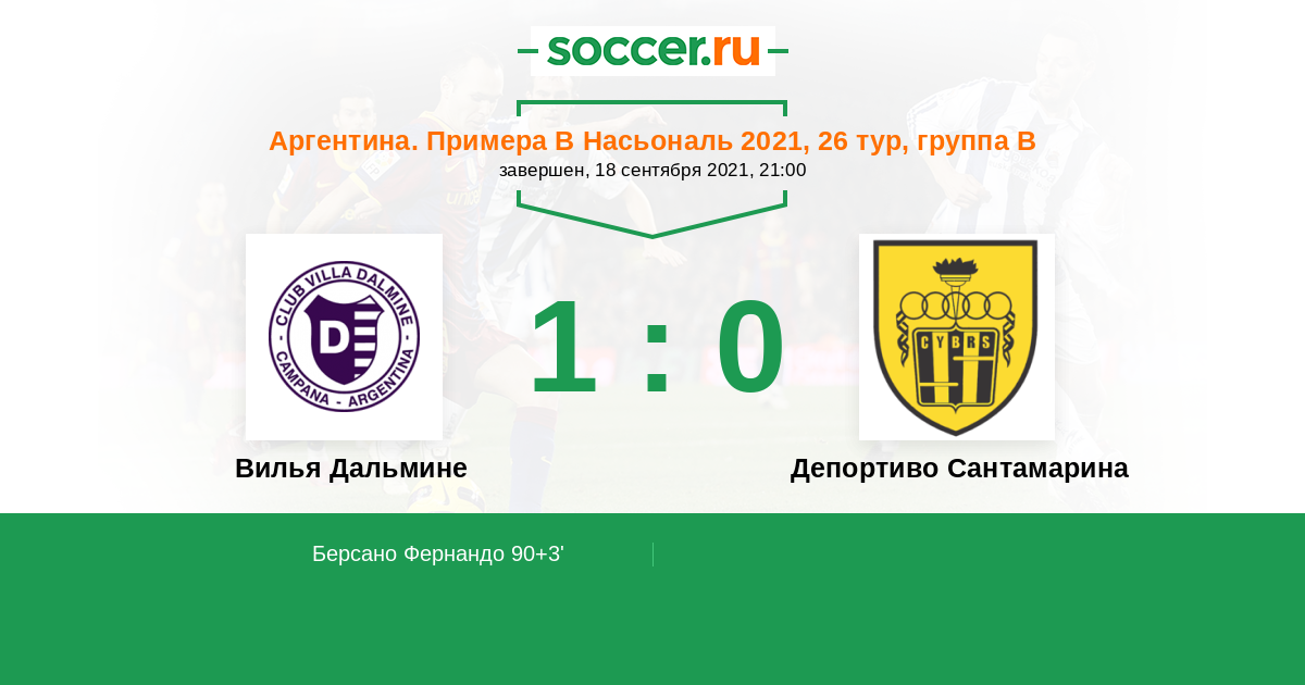 Протокол матча Вилья Дальмине против Депортиво Сантамарина