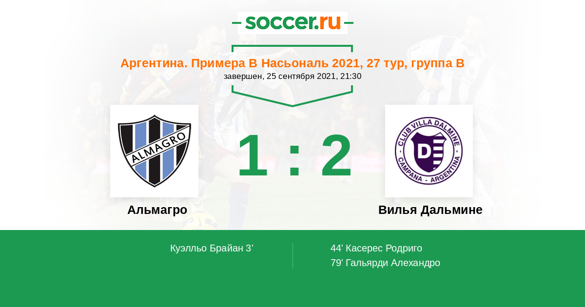 Протокол матча Альмагро против Вилья Дальмине