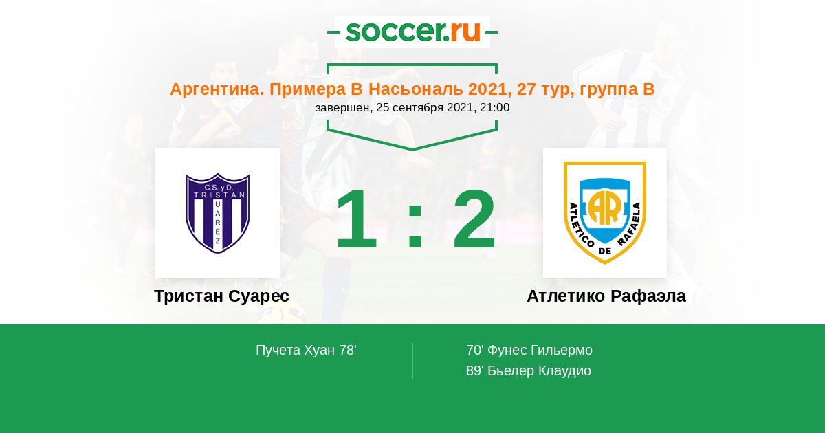 Протокол матча Тристан Суарес против Атлетико Рафаэла