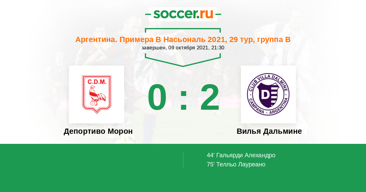 Протокол матча Депортиво Морон против Вилья Дальмине