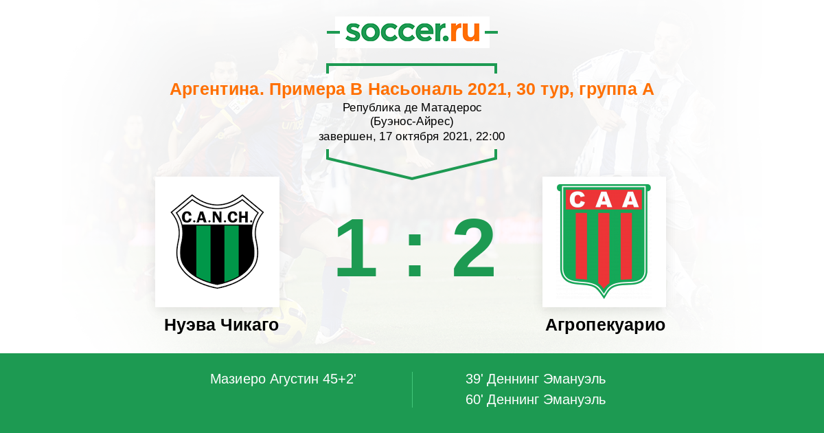 Протокол матча Нуэва Чикаго против Агропекуарио