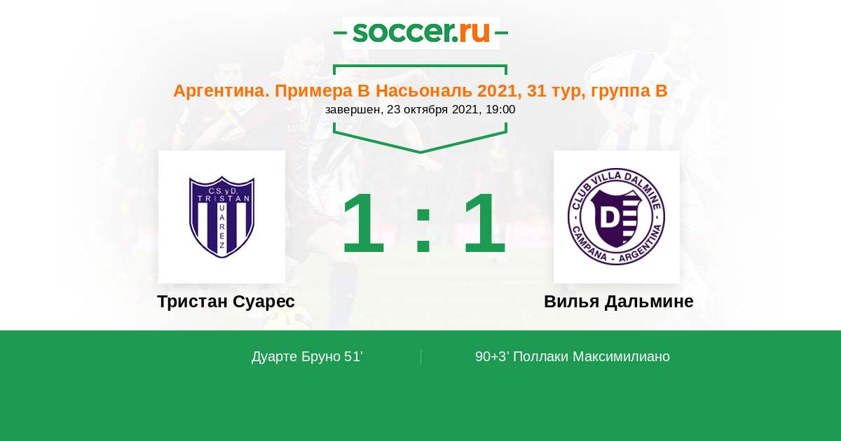 Протокол матча Тристан Суарес против Вилья Дальмине