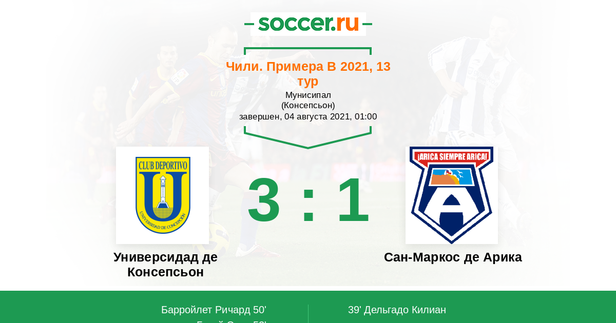 Протокол матча Универсидад де Консепсьон против Сан-Маркос де Арика