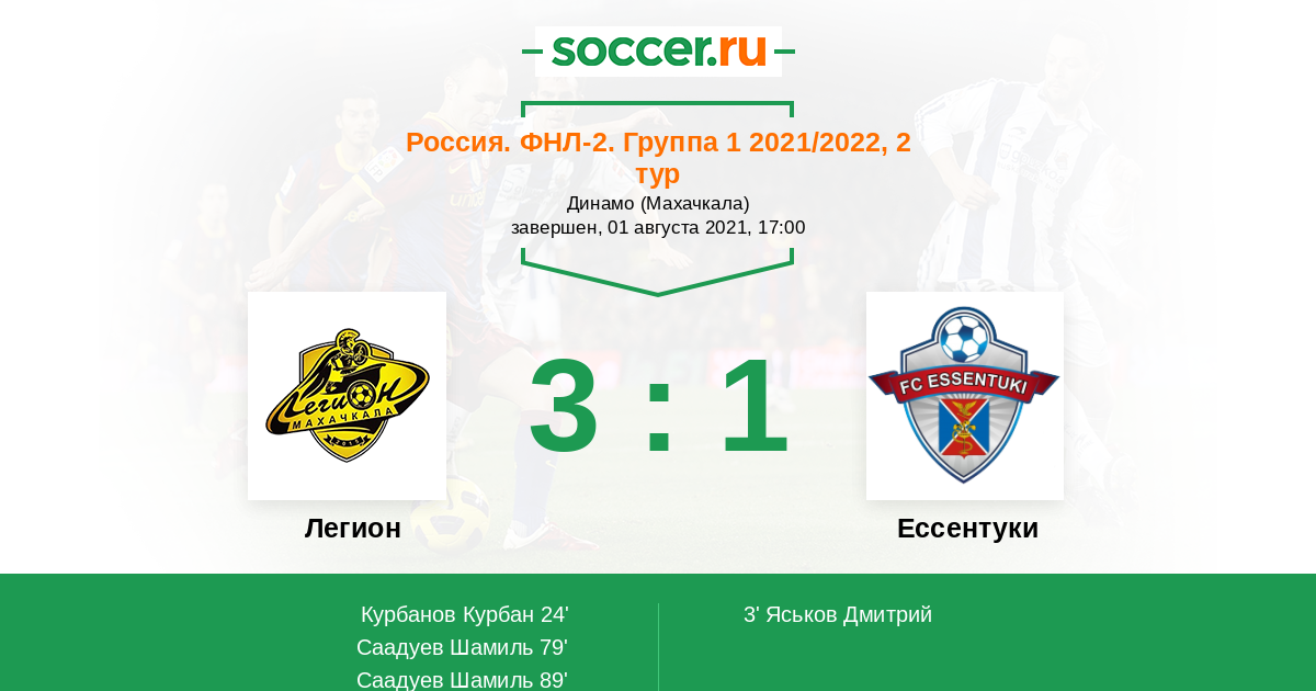 Протокол матча Легион против Ессентуки