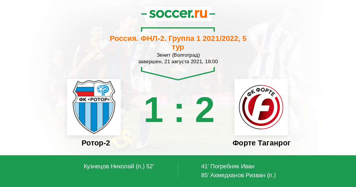 Протокол матча Ротор-2 против Форте Таганрог