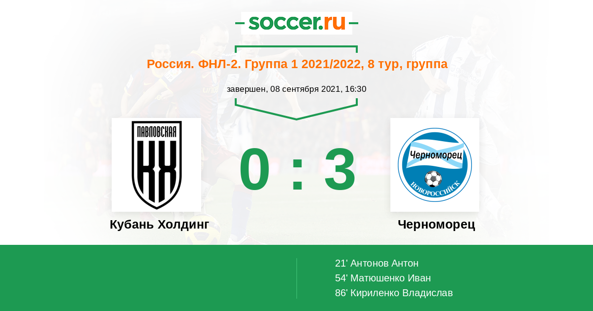 Протокол матча Кубань Холдинг против Черноморец