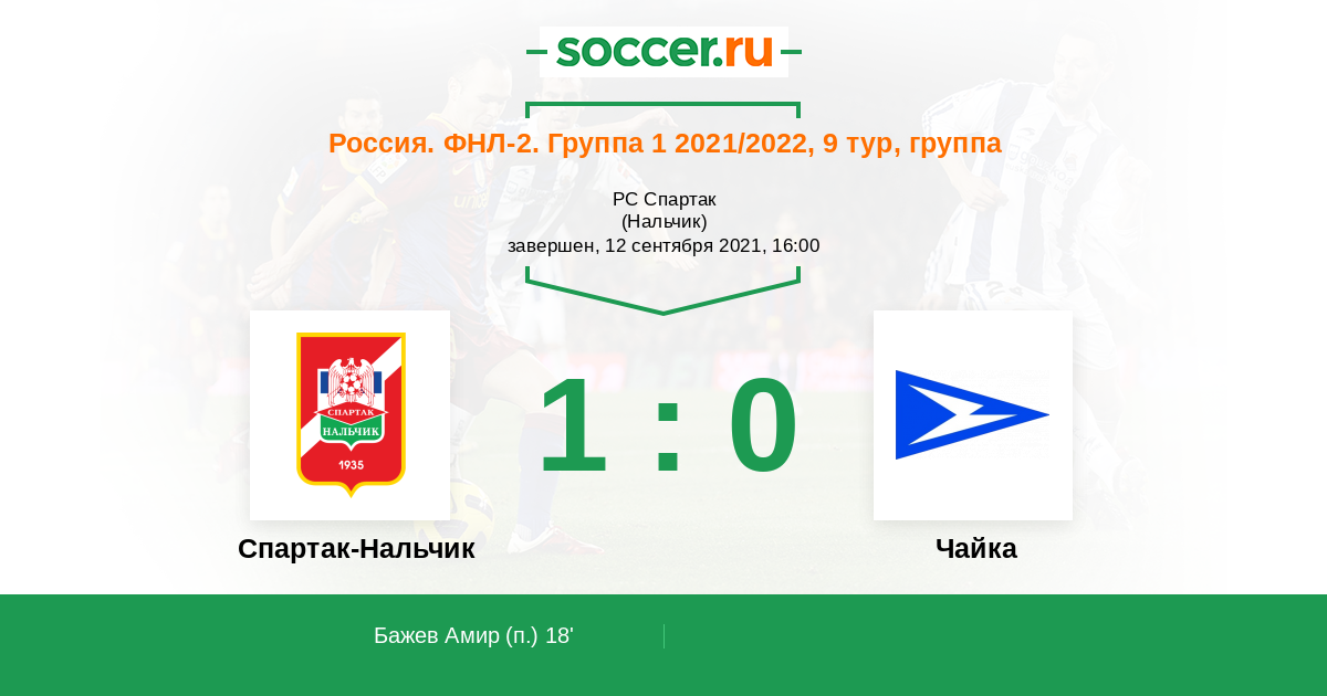 Протокол матча Спартак-Нальчик против Чайка