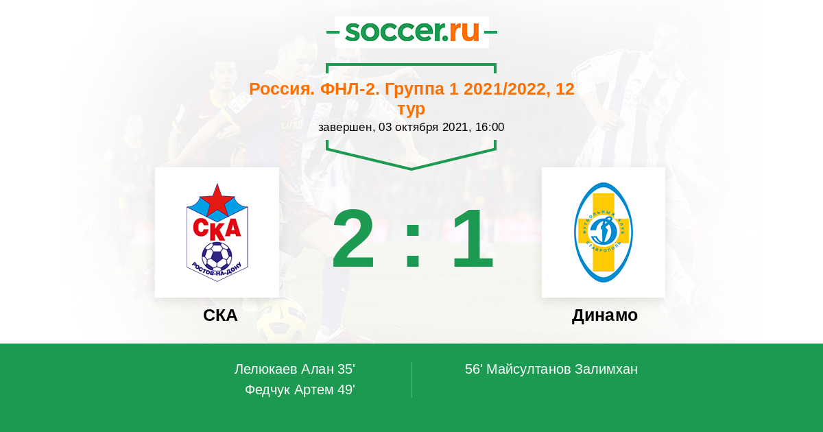 Протокол матча СКА против Динамо Ставрополь