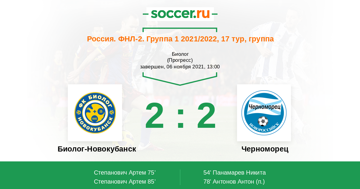 Протокол матча Биолог-Новокубанск против Черноморец