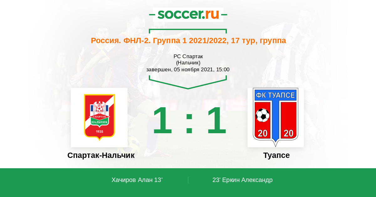 Протокол матча Спартак-Нальчик против Туапсе