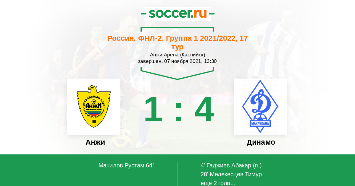 Протокол матча Анжи против Динамо