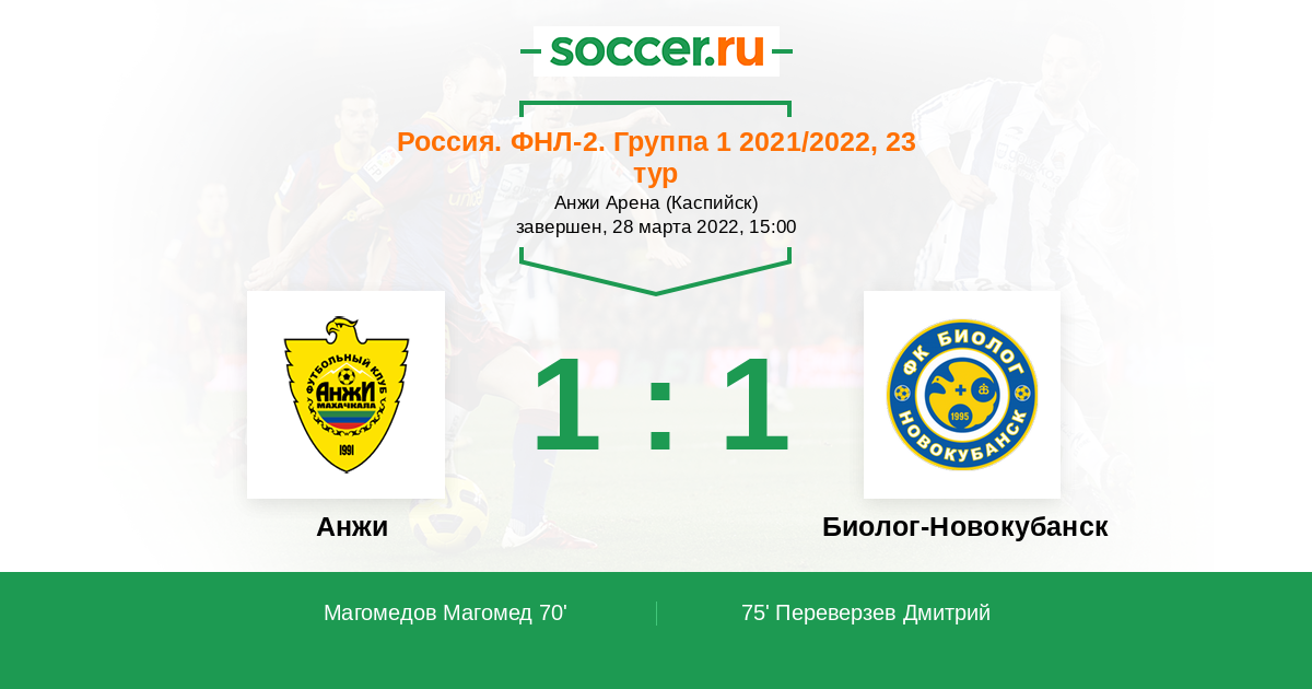 Протокол матча Анжи против Биолог-Новокубанск