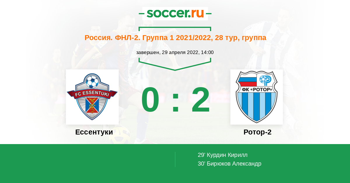 Протокол матча Ессентуки против Ротор-2