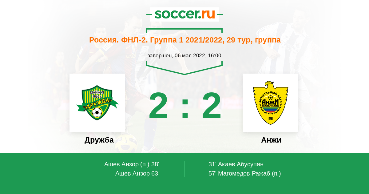 Протокол матча Дружба против Анжи