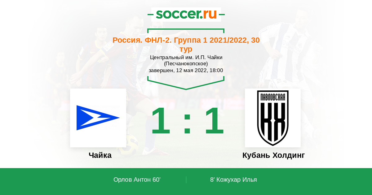 Протокол матча Чайка против Кубань Холдинг