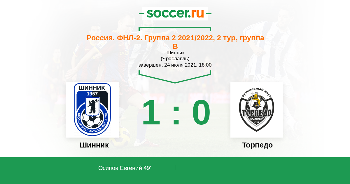 Протокол матча Шинник против Торпедо