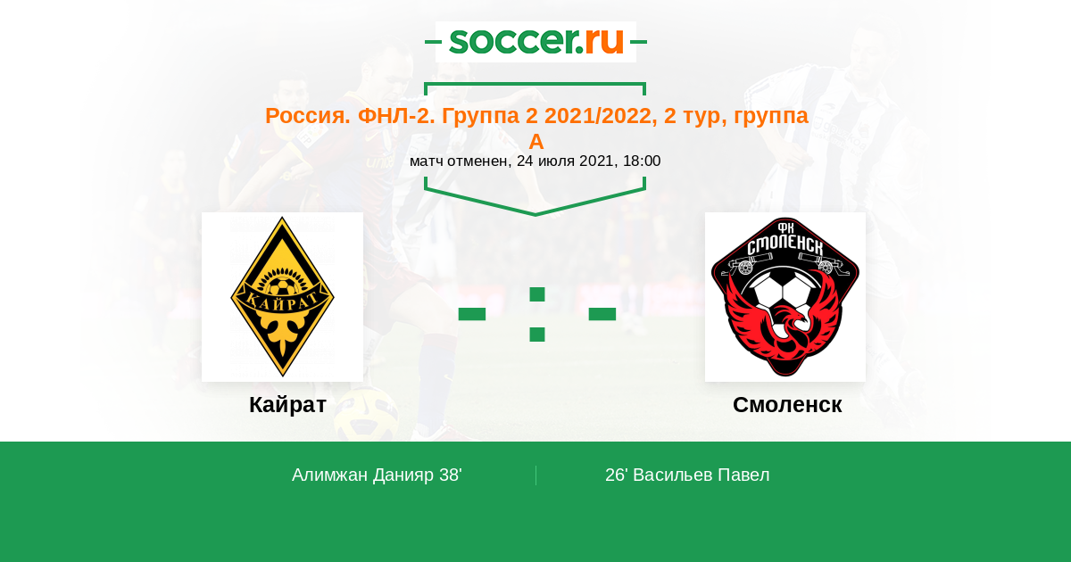 Расстановка матча Кайрат против Смоленск