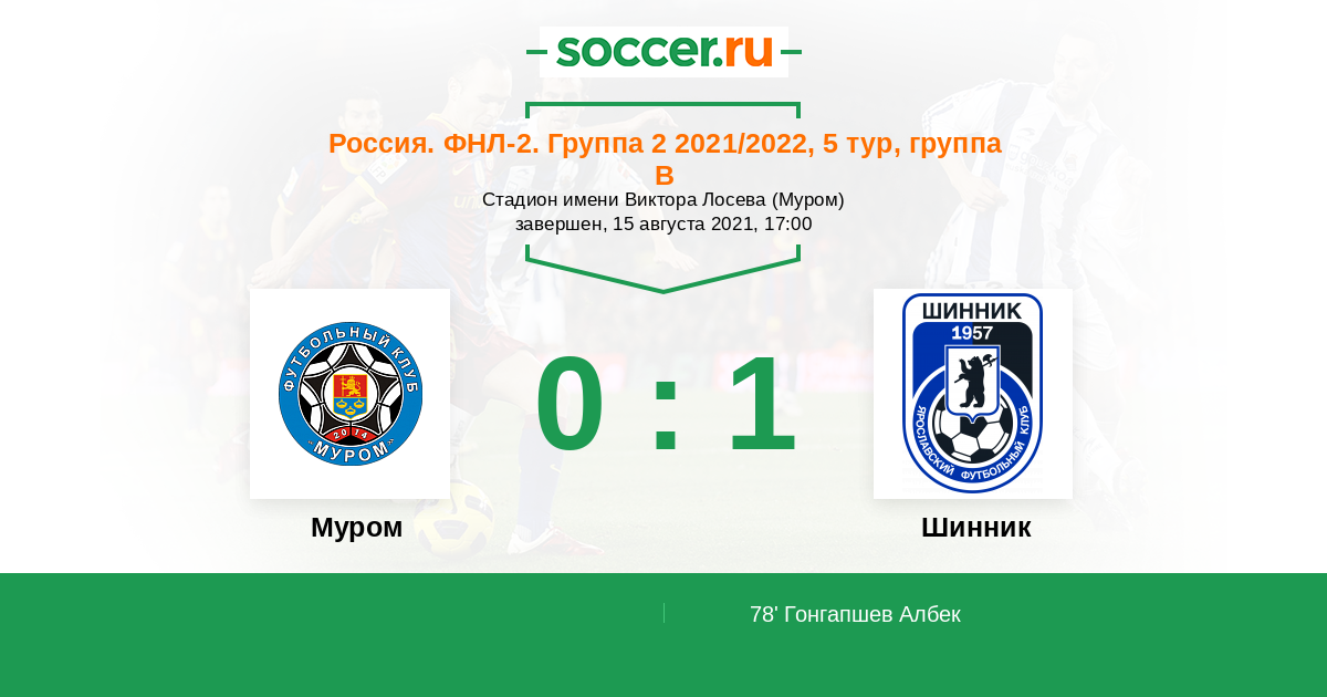 Протокол матча Муром против Шинник