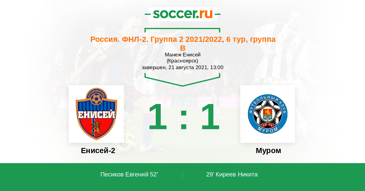 Протокол матча Енисей-2 против Муром