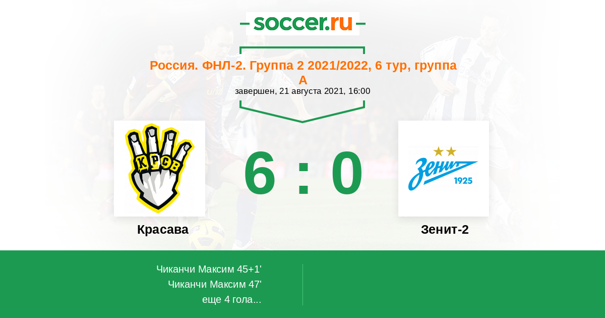 Протокол матча Красава против Зенит-2