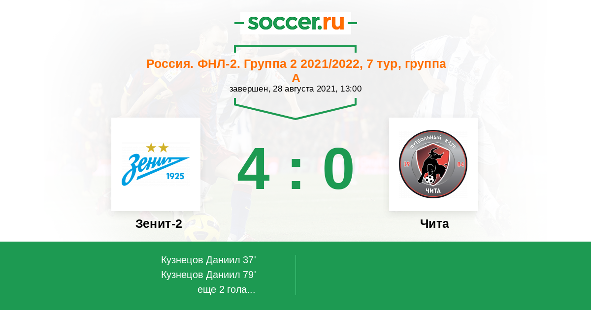 Протокол матча Зенит-2 против Чита