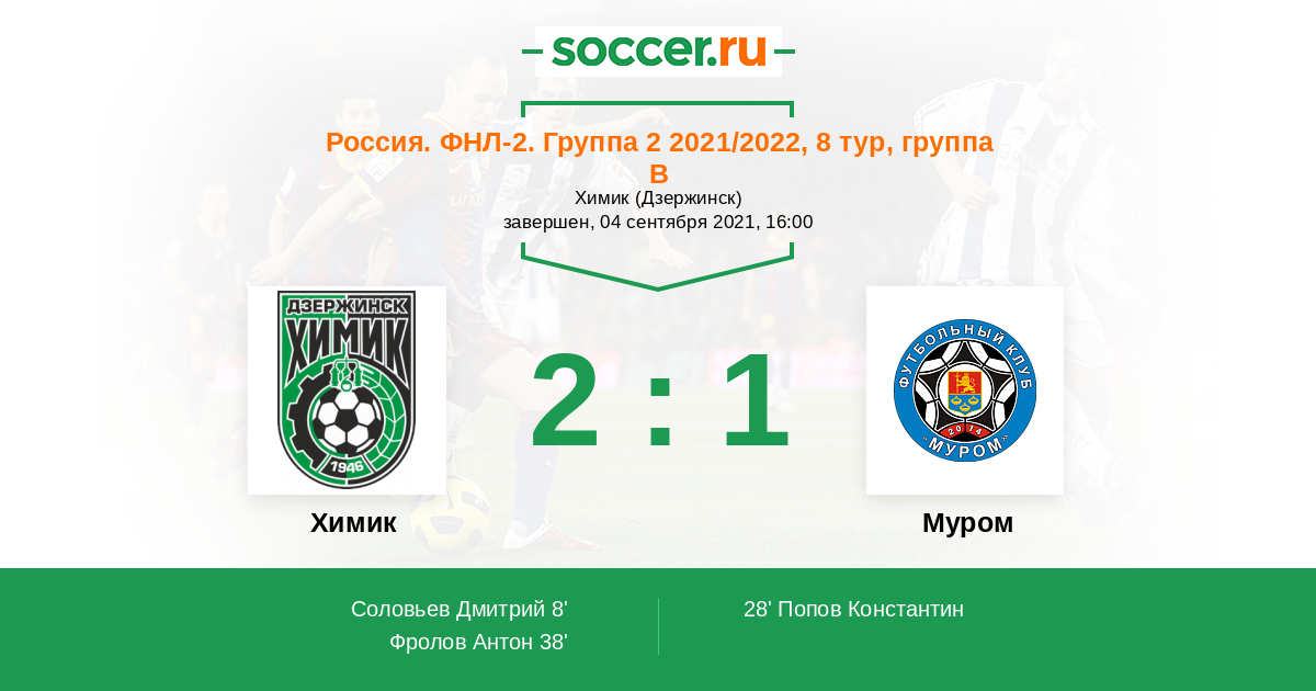 Протокол матча Химик против Муром